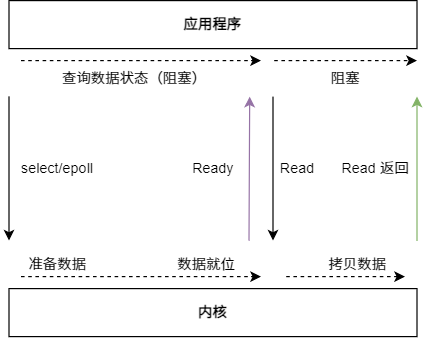 虽然调用 select/epoll 查询数据状态,发起调用的用户线程依然会阻塞,但是比 Read 系统调用来说开销更小。