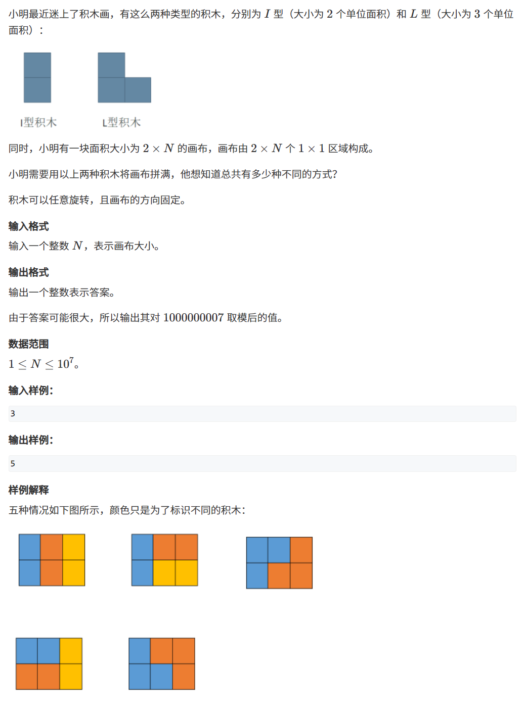 f[i][2] = f[i-1][1] % MOD + f[i-2][3] % MOD;